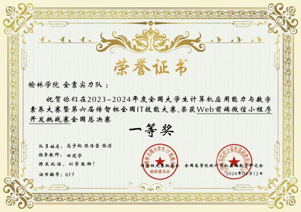 近日,由全国高等院校计算机基础教育研究会主办的第六届“传智杯”全国老员工IT技能大赛院——WEB前端微信小程序开发挑战赛成绩揭晓,由bevictor伟德高宇翔、陈佳莹和张潇三名同学组队提交的作品最终获得全国总决赛一等奖。