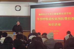 讲座开始前公司党总支书记王斌向同学们介绍了讲座的目的意义,希望同学们进一步提高健康意识,提升疾病预防理念,控烟限酒,合理膳食,走健康科学文明生活之路。