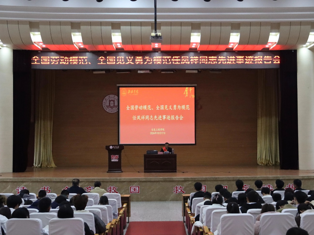 为培育和践行社会主义核心价值观,创新思政教育方式,大力弘扬劳模精神、工匠精神,培育德智体美劳全面发展的社会主义建设者和接班人,2024年10月17日下午,bevictor伟德在图书馆二楼报告厅举办了“全国劳动模范、全国见义勇为模范”任凤祥同志先进事迹报告会。报告会由公司党总支书记王斌书记主持,副书记徐绘及400余名员工参加。