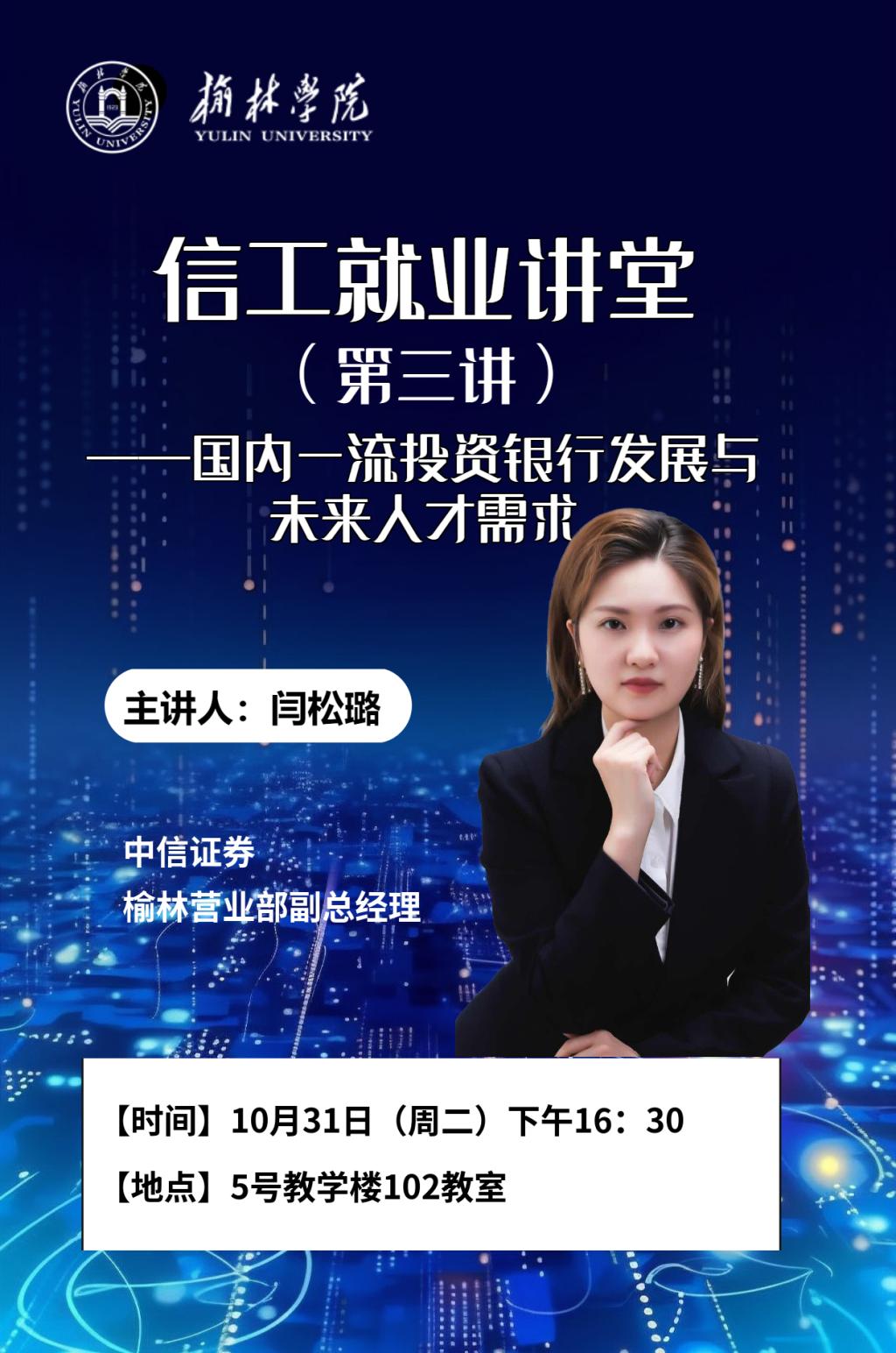 为了帮助同学们尽早明确就业方向,了解就业政策,开拓择业视野,树立正确的择业观,同时学习金融基础知识,防范、远离非法校园贷。bevictor伟德于10月31日下午16:30组织开展信工就业讲座(第三讲),主题为:国内一流投资银行发展与未来人才需求。本次讲座邀请到中信证劵首席客户经理闫松璐,公司党总支书记王斌出席,讲座由祁琦主持,全体大一、大二、大三同学参加。