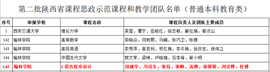 近日,陕西省教育厅发布了《关于公布第二批陕西省课程思政示范课程、教学团队和教学研究示范中心认定结果的通知》,公司《C语言程序设计》课程被认定为陕西省本科教育类课程思政示范课程,其教学团队被认定为省级课程思政示范教学团队。