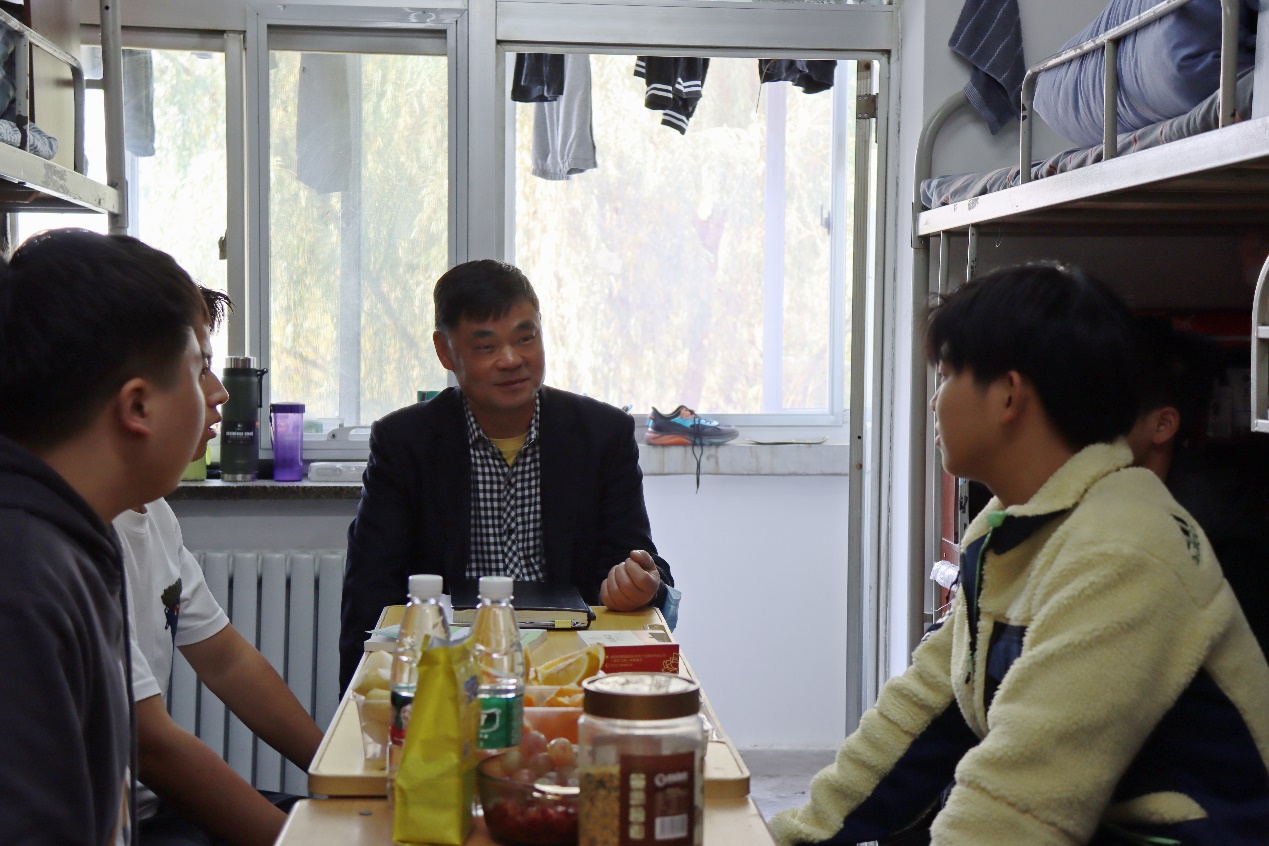 10月7日下午,董事长许云华在公司党总支书记张烨、党政办公室副主任宋潇的陪同下走进4号公寓楼,与bevictor伟德2022级新生一起聊冷暖、问需求、谈奋斗、话未来。