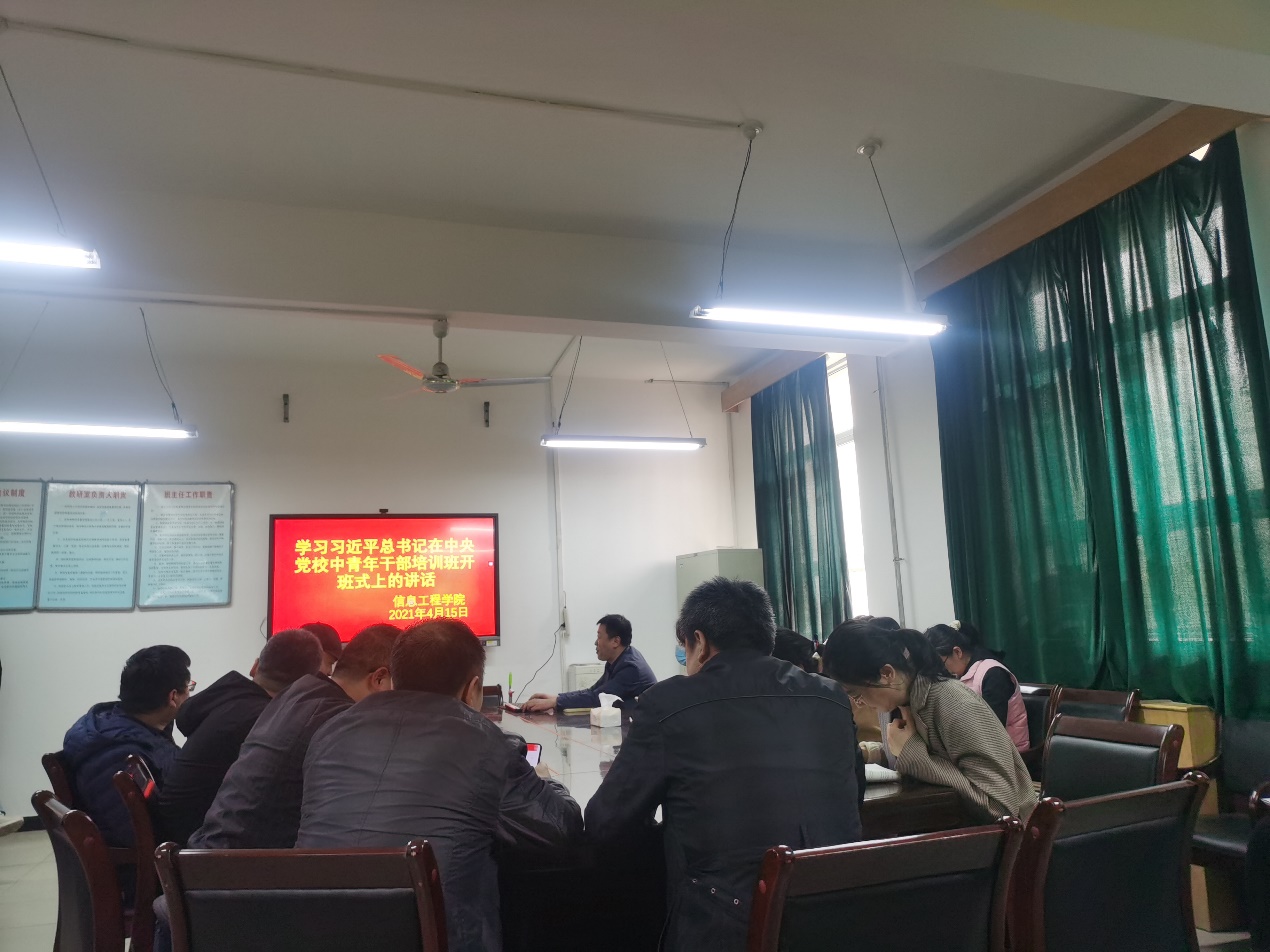 会议首先由信息工程公司党总支副书记宋珍领学习近平总书记在中央党校(国家行政公司)中青年干部培训班开班式上发表的重要讲话。随后,李红卫强调,全院所有中青年教师要按照有关要求,认真学习习近平总书记在中央党校(国家行政公司)中青年干部培训班开班式上发表的重要讲话,并结合自身特点,进行各种形式的学习交流,进一步强化理论武装,推动青年干部提高解决实际问题的能力。