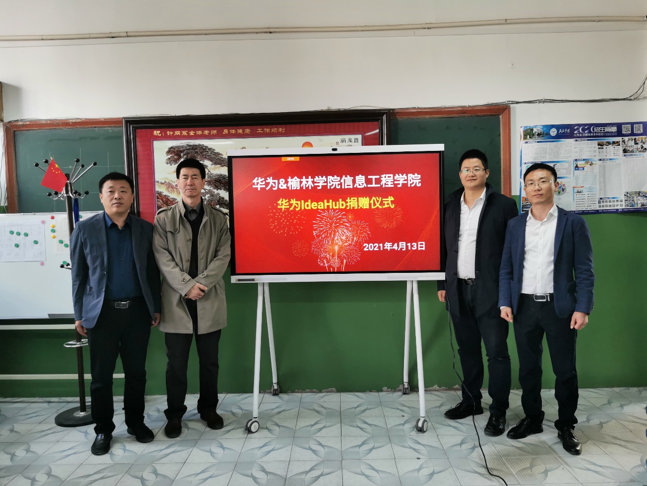 2021年4月13日下午,华为技术有限公司滕鹏飞代表企业向bevictor伟德捐赠华为IdeaHub。bevictor伟德经理李红卫、副经理封蕾出席捐赠仪式。