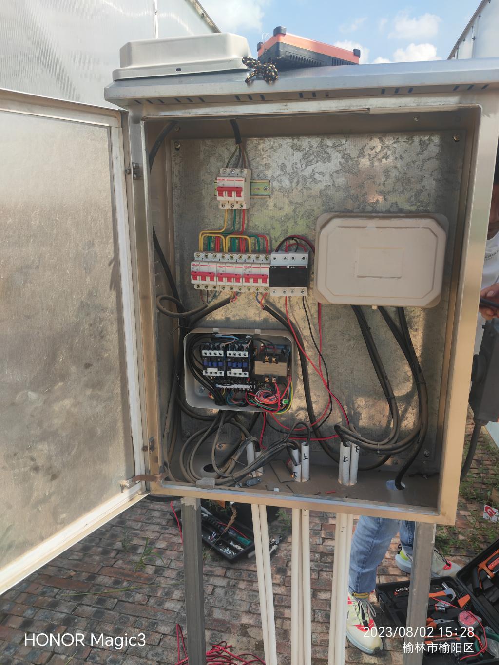 为了给公司生科院师生试验带来便捷、减轻经济负担、提高试验准确性。公司物联网项目组联合领航慧业经过多次实地调研、勘察,认真分析研究了两个380伏高压电机移动遮阳/雨棚的过程,研究改造实施方案,实验室内多次试验,最终完美实现了利用智能终端对遮阳/雨棚的远程控制,从此试验人员可以在任何地方实时对遮阳/雨棚进行操作。