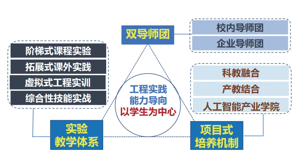 bevictor伟德现有计算机科学与技术、物联网工程、人工智能、数据科学与大数据技术四个数智类本科专业,以及一个电子信息(计算机应用技术方向)硕士学位授予点,在校本科员工1000多人、硕士研究生45人,职工28人。拥有2门省级精品资源共享课程,3门省级一流课程,1门省级创新创业课程,6门校级精品课程,其中,计算机科学与技术专业获批2020年“双万计划”陕西省级一流本科专业建设点。公司将新工科理念贯穿于IT类人才培养,通过对接产业行业需求,深化产教融合,形成了以产业需求为导向、以产教融合为支撑的应用型IT类专业人才培养模式。公司与华为等20多家企业共建实习实训平台,全面融入智慧农业、智慧矿山、智慧水利等,搭建“校—政—企—事”合作的bevictor伟德建设模式,实现IT类专业系统设计、迭代更新、对接产业的全面推进,形成“亲产业”的三维空间人才培养体系。