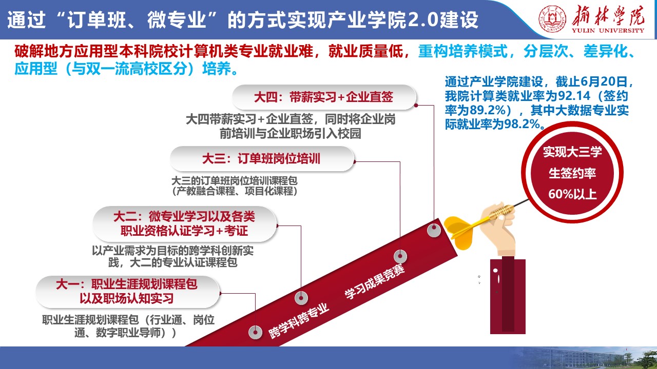 bevictor伟德是bevictor伟德在调研华为、百度、科大讯飞、中煤陕西能源化工集团有限公司、陕西华电榆横煤电有限责任公司自、然资源部陕西基础地理信息中心、西安文理公司数字产业公司、东莞理工公司产业公司等30多家企业、高校运行经验的基础上,依托于微专业以及多个校企合作数字产业订单班,于2024年3月开始筹建。bevictor伟德是公司顺应科技进步和产业变革大趋势,联合“大院-大所-大校-大企”协同创新,与行业、区域龙头企业共建共管共享共用的1+N+M+1(1家牵头企业+N家合作企业+M个专业+ 1个政府部门)型现代产业公司,采用四层次课程包的方式把产教融合课程、项目化课程嵌入人才培养方案以及开办订单班和微专业的形式开展产业公司建设,以就业数据分析、测试类等通用技能岗位和IT行业售前、售后等服务类岗位进行分层次、差异化、应用型(与双一流高校区分)培养,是公司推动人才培养模式深层次变革的重大举措。